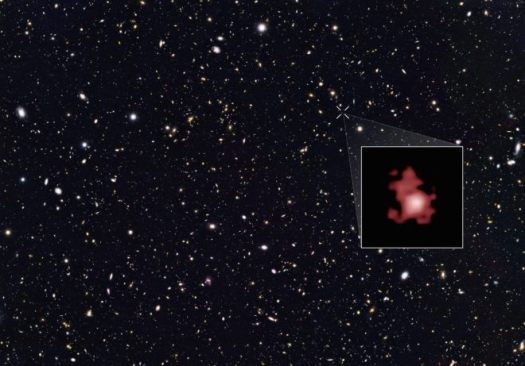 Galaxy GN-z11, shown in the inset, was imaged as it was 13.4 billion years in the past, just 400 million years after the big bang. That means the universe was only three percent of its current age when the light left that galaxy.