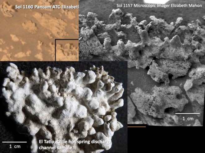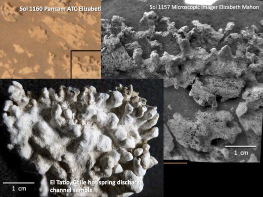 Clearly, to land nearby an ancient hot springs areas with rock formations potentially identical to microbial-formed rocks found on Earth has substantial appeal. And as Williford explained it, during the February meeting there was long debate about whether the shapes on Mars were or were not sculpted by life, and whether they are remnants of an ancient hot sprins — which is an ideal breeding grounds for life on Earth.