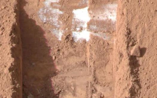 Because the ice is only visible where surface soil has been removed, the paper says it is likely that ice near the surface is more extensive than detected in this study.