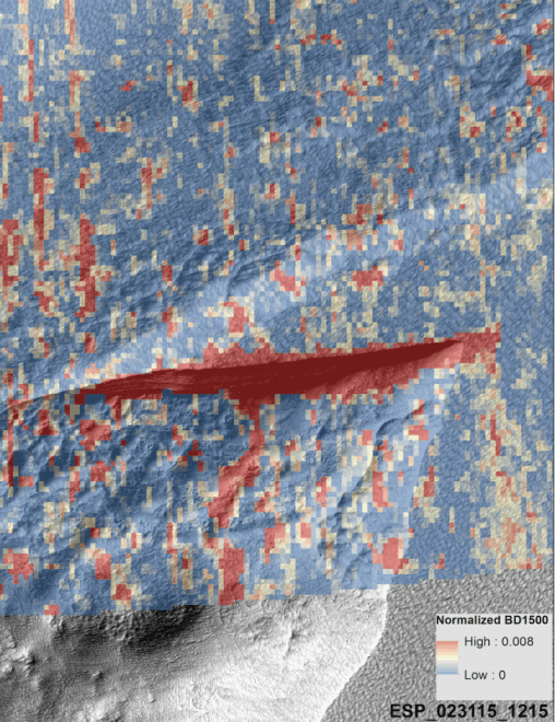 Dundas agreed that the new paper was a continuation of earlier work, rather than something entirely new. “We’ve known for some time that there is shallow ground ice within a meter of the surface, and there have been recent radar detections of ice sheets tens of meters thick,” he said in his email. “What our work does is provide some three-dimensional information at high resolution that helps tie things together.”