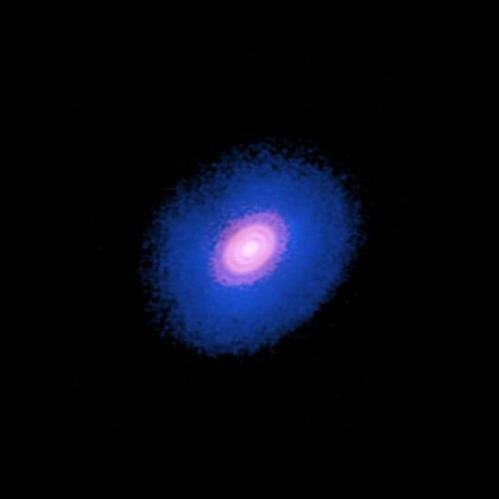 As explained in a release from the National Radio Astronomy Observatory, which manages the American operations of the multi-national ALMA, molecules of carbon monoxide naturally emit a very distinctive millimeter-wavelength light that ALMA can observe. Subtle changes in the wavelength of this light due to the Doppler effect provide a glimpse into the motion of the gas in the disk.