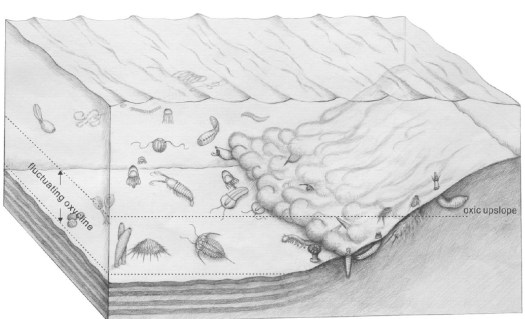 The mechanism for preservation is generally the burial of the lifeforms in an oxygen-free environment with minimal bacteria, thus delaying decomposition. This is theorized to have happened at these Cambrian sites when an upslope mudslide carried the creatures to lower depths and then entombed them in the mud.