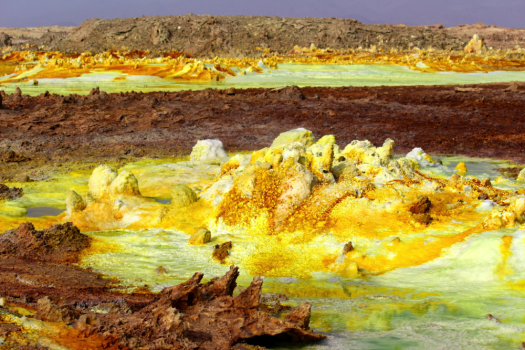 Ethiopia’s Dallol volcano and hot springs have created an environment about as hostile to life as can be imagined.