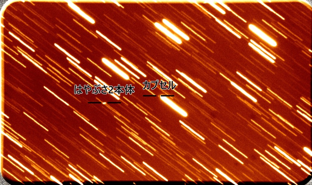 On Saturday December 5, 2020 at 14:30 JST, data from the spacecraft confirm that the separation operation had worked as planned and the capsule was now falling towards Earth. However, an even better confirmation arrived later that evening, when telescopes in Japan successfully imaged both the spacecraft and the capsule from the ground. The asteroid sample really was heading home.