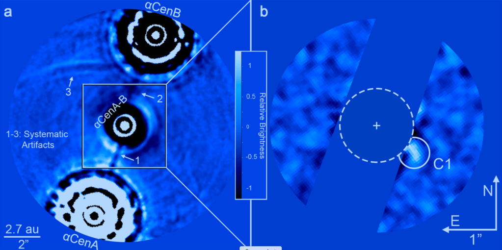 Despite using one of the top instruments currently available, the observation was a long one with around 100 hours of data collected. However, the effort was rewarded by a possible planet candidate situated just 10% further from α Centauri A than the Earth is from the sun. The team note that this is not definitely a planet, as the observation result could match that of an exozodical dust disc circling the star — that is, scattered light from the star that is re-emitted in the infrared by interplanetary dust particles. If it is a planet, it sits within the star’s habitable zone and is between Neptune and Saturn in size. This is too large to be rocky, but its discovery indicates that the α Centauri may harbor planets we have not yet seen, and also shows the potential to image those temperate worlds directly.