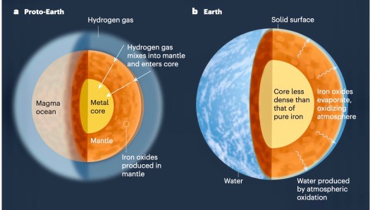 A few scientists had already suggested that the answer could be that light hydrogen made its way down to the core and bonded with the liquid iron and other elements. Shahar said that the group’s model offers a explanation of how hydrogen might make it down to the core, just as the model produces water and an oxidized surface.